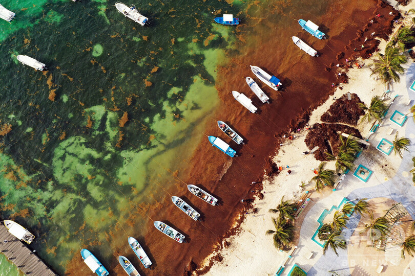 【5月25日 AFP】メキシコ・キンタナロー(Quintana Roo)州のカリブ海(Caribbean Sea)沿岸部の都市プエルトモレロス(Puerto Morelos)では、漂着するホンダワラ属の海藻の量が増え過ぎて、頭を抱えた研究者やホテル経営者、自治体が除去方法を検討している。