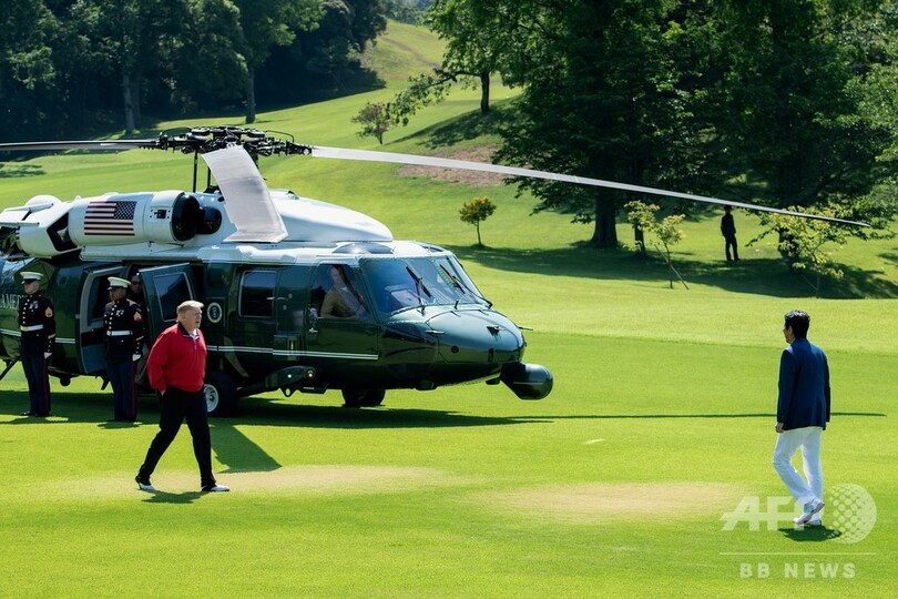 トランプ大統領、晴れ渡った空の下 安倍首相とゴルフ
