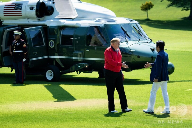 トランプ大統領、晴れ渡った空の下 安倍首相とゴルフ
