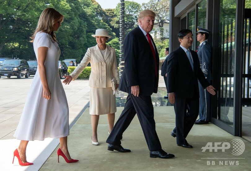 【5月27日 AFP】(更新、写真追加)国賓として日本を訪問中のドナルド・トランプ(Donald Trump)米大統領は27日、皇居で天皇陛下と会見した。今月即位された天皇陛下が外国の指導者と会見するのはトランプ氏が初めて。安倍晋三(Shinzo Abe)首相は、トランプ氏に用意された特別な扱いが両国間の難しい貿易交渉でなんらかの効果を発揮することを期待している。