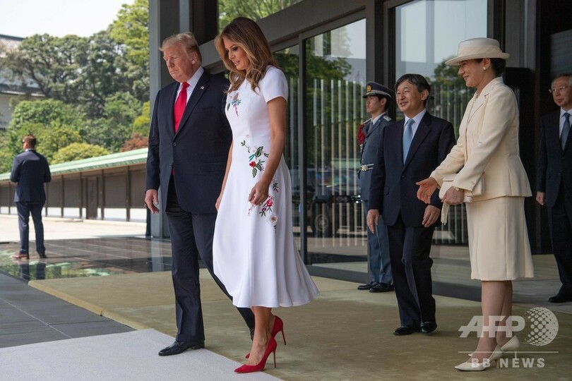 【5月27日 AFP】(更新、写真追加)国賓として日本を訪問中のドナルド・トランプ(Donald Trump)米大統領は27日、皇居で天皇陛下と会見した。今月即位された天皇陛下が外国の指導者と会見するのはトランプ氏が初めて。安倍晋三(Shinzo Abe)首相は、トランプ氏に用意された特別な扱いが両国間の難しい貿易交渉でなんらかの効果を発揮することを期待している。