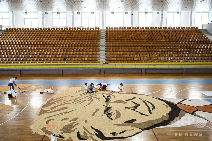 【5月27日 AFP】コソボのジャコバ(Gjakova)で25日、同国のアーティスト、アルケント・ポジグ(Alkent Pozhegu)氏が穀物の種を用い、米国のドナルド・トランプ(Donald Trump)大統領のモザイク画を制作した。面積560平方メートルのインスタレーションは、ギネス世界記録(Guiness World Records)の「最も大きな穀物画」の記録更新を目指して制作された。(c)AFP