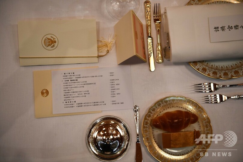 【5月27日 AFP】国賓として日本を訪問中のドナルド・トランプ(Donald Trump)米大統領とメラニア(Melania Trump)夫人は27日、天皇、皇后両陛下が皇居で催された晩さん会に出席した。(c)AFP