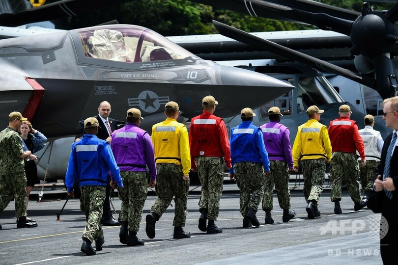 【5月28日 AFP】(更新、写真追加)訪日中のドナルド・トランプ(Donald Trump)米大統領は最終日となる28日、神奈川県横須賀市の横須賀基地を訪問し、海上自衛隊の護衛艦「かが(JS Kaga)」を視察した。