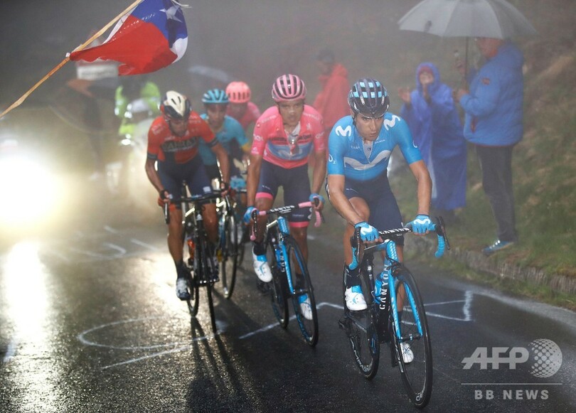 この結果、総合順位ではカラパスが首位をキープし、ニバリは1分47秒差の2位に浮上。ログリッチはトップと2分9秒差の3位に転落し、4位には3分15秒差でモビスターのミケル・ランダ(Mikel Landa、スペイン)がつけている。(c)AFP