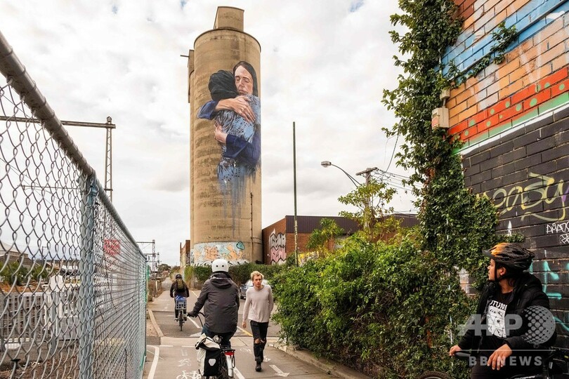 豪メルボルンに、アーダーンNZ首相の壁画