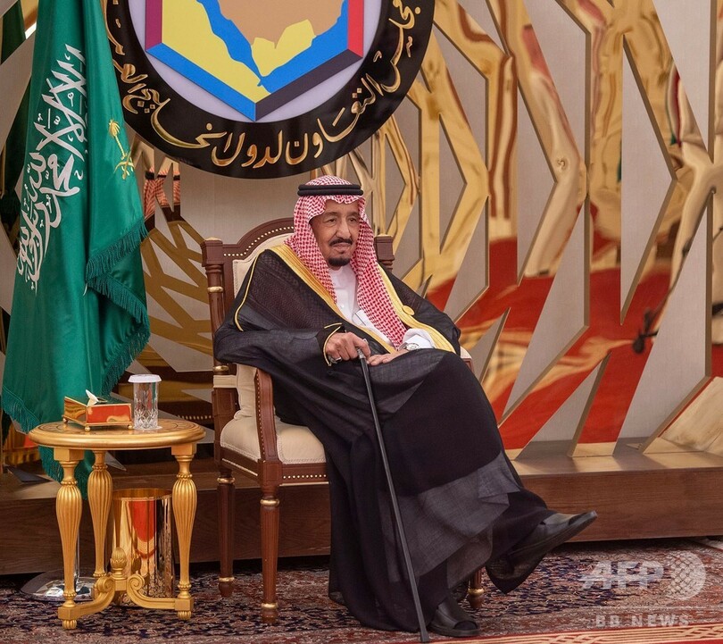 サルマン国王は各首脳の前で、「イラン政権による中東諸国への干渉、核・ミサイル開発、自由な国際海運への威嚇は世界の石油供給に対する脅威だ」と指摘し、「(イランの)ここ最近の犯罪行為に対しては、湾岸協力会議(GCC)の安全保障維持のため、われわれすべてが真剣に取り組む必要がある」と強調した。(c)AFP/Mohamad Ali Harissi
