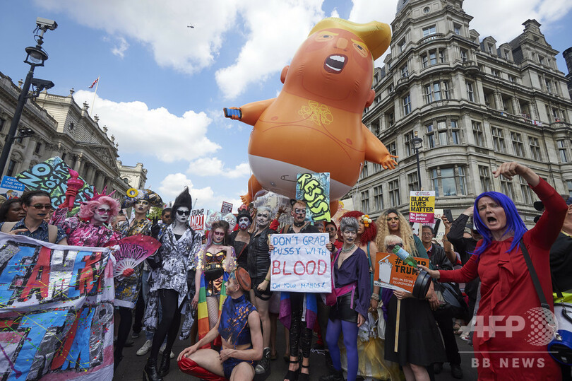トランプ氏は英滞在中、エリザベス女王(Queen Elizabeth II)に謁見(えっけん)しテリーザ・メイ(Theresa May)首相と会談することになっている。