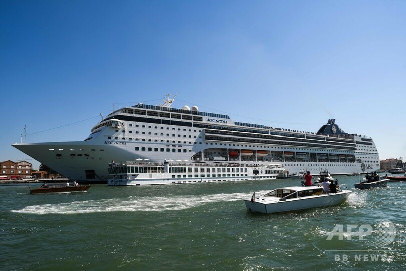 今回の事故で沿岸に極めて近いところまで接近するクルーズ船が、ベネチア市と同市の壊れやすい生態系にもたらす被害をめぐり、再び非難の声が上がっている。(c)AFP