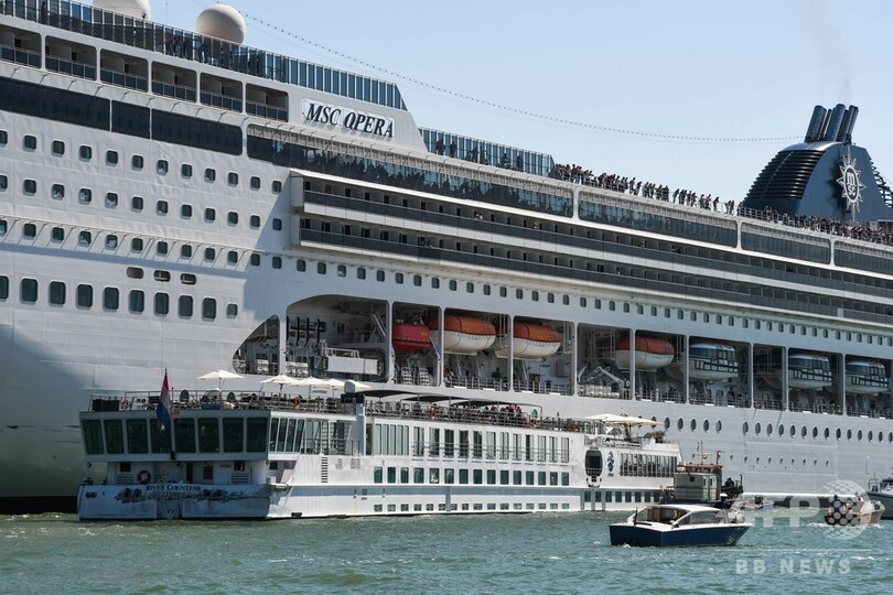 事故が起きたのはジュデッカ(Giudecca)運河のサンバジリオ(San Basilio)とザッテレ(Zattere)の間。ツイッター(Twitter)に投稿された動画には、港にいた人々が逃げるなか、デッキ数13のクルーズ船、MSCオペラ(MSC Opera)がエンジン音をとどろかせて岸壁にぶつかり、観光船に衝突する様子が映し出されている。オペラは2500人余りの乗船が可能で、劇場やダンスホール、子どもの水遊び施設を備えている。