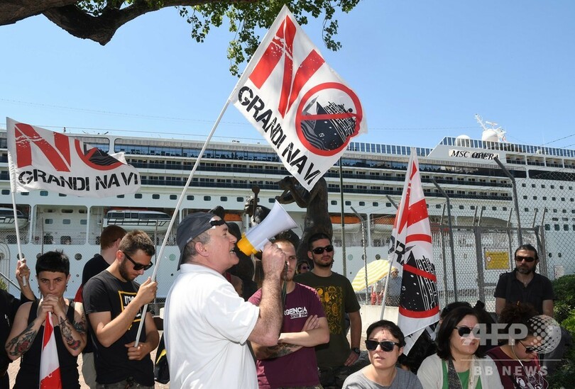 今回の事故で沿岸に極めて近いところまで接近するクルーズ船が、ベネチア市と同市の壊れやすい生態系にもたらす被害をめぐり、再び非難の声が上がっている。(c)AFP