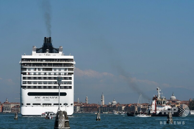 今回の事故で沿岸に極めて近いところまで接近するクルーズ船が、ベネチア市と同市の壊れやすい生態系にもたらす被害をめぐり、再び非難の声が上がっている。(c)AFP