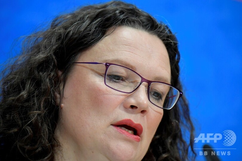 【6月3日 AFP】ドイツのキリスト教民主・社会同盟(CDU・CSU)と大連立政権を組んでいる社会民主党(SPD)のアンドレア・ナーレス(Andrea Nahles)党首(48)は2日、党首を辞任する意向を示した。