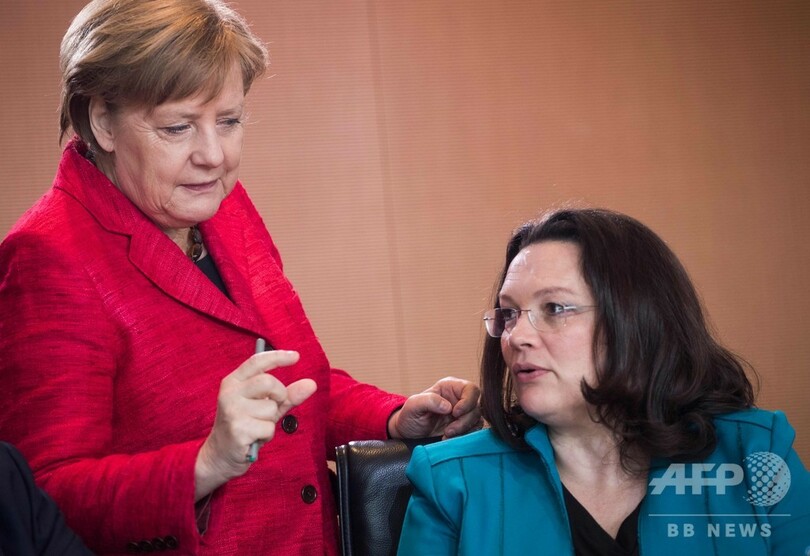 【6月3日 AFP】ドイツのキリスト教民主・社会同盟(CDU・CSU)と大連立政権を組んでいる社会民主党(SPD)のアンドレア・ナーレス(Andrea Nahles)党首(48)は2日、党首を辞任する意向を示した。