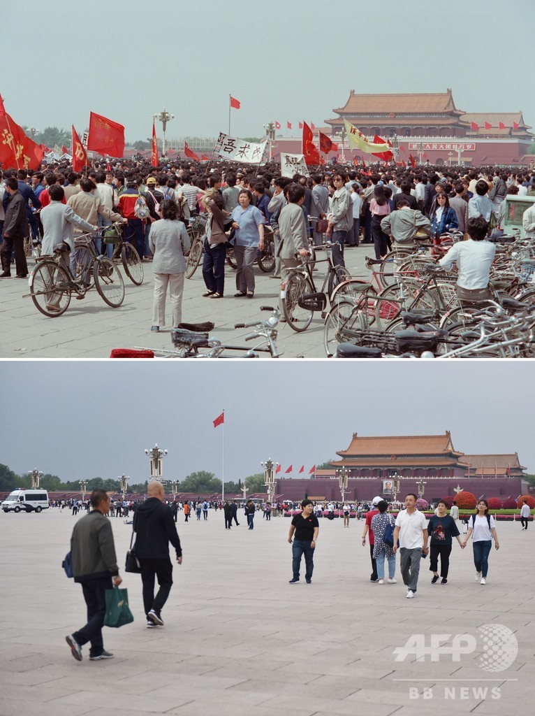 ニュース 政治・経済 天安門事件から30年、写真で見る当時と今 2019年6月4日 7:00 発信地:北京/中国 [ 中国 中国・台湾 ] このニュースをシェア ‹ › ❮ 5/5 ❯ 中国・北京の天安門広場に集まった民主化を求める市民たち(上、1989年5月15日撮影)と現在の天安門広場の様子(下、2019年5月18日撮影)を並べた写真(2019年5月29日作成)。(c)Greg Baker and Toshio SAKAI / AFP 画像作成中 ! 【6月4日 AFP】中国で4日、北京で学生らの民主化運動が武力弾圧された1989年の天安門(Tiananmen)事件から30周年の節目を迎えた。写真は30年前の天安門広場と現在の様子を並べたもの。(c)AFP 政治・経済 一覧へ> メディア・報道関係・法人の方向け 写真・動画 購入のお問合せ>