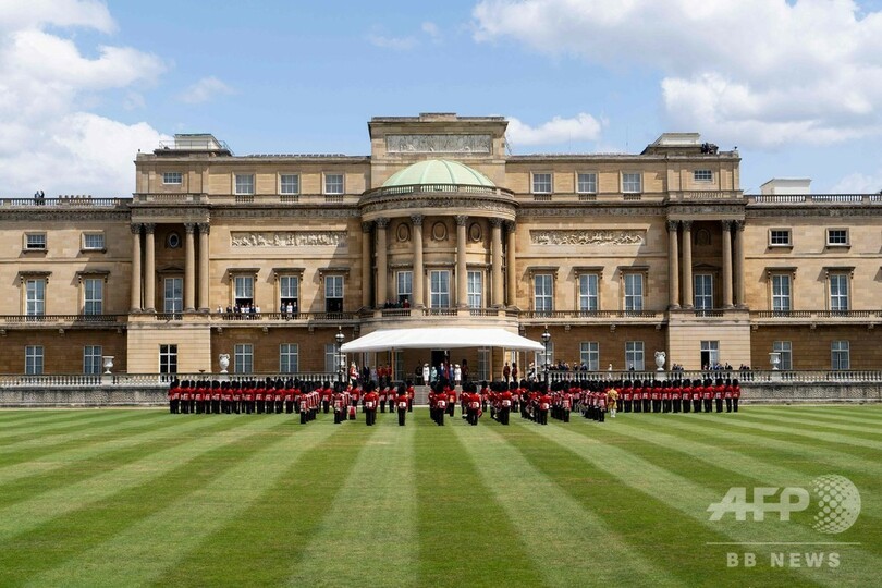同宮殿の庭園で41発の礼砲が鳴り響く中、エリザベス女王とチャールズ皇太子(Prince Charles)は、トランプ大統領夫妻と握手を交わした。その後、英軍が両国の国歌を演奏した。