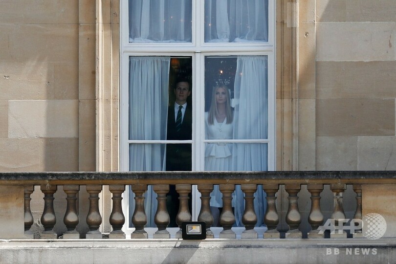 同宮殿の庭園で41発の礼砲が鳴り響く中、エリザベス女王とチャールズ皇太子(Prince Charles)は、トランプ大統領夫妻と握手を交わした。その後、英軍が両国の国歌を演奏した。
