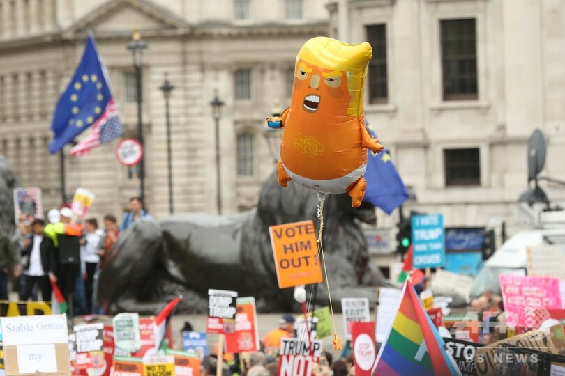 トランプ氏は、ロンドン中心部で数千人が抗議デモを行っている事態を「偽ニュース」だと切り捨て、最大野党・労働党のジェレミー・コービン(Jeremy Corbyn)党首との会談を拒否した。コービン氏はトランプ氏の政策を激しく批判する演説を行いながらも一対一での会談を望んでいた。