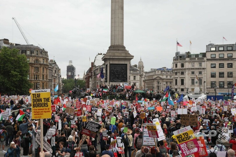 トランプ氏は、ロンドン中心部で数千人が抗議デモを行っている事態を「偽ニュース」だと切り捨て、最大野党・労働党のジェレミー・コービン(Jeremy Corbyn)党首との会談を拒否した。コービン氏はトランプ氏の政策を激しく批判する演説を行いながらも一対一での会談を望んでいた。