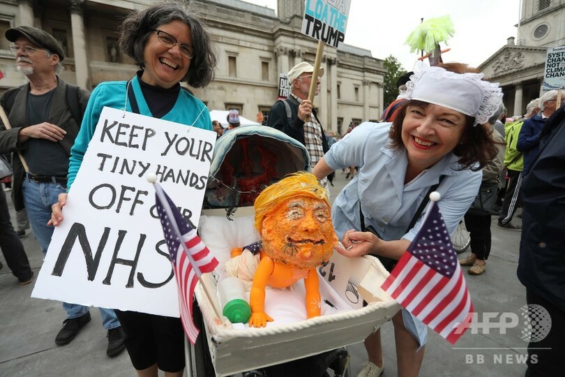 トランプ氏は、ロンドン中心部で数千人が抗議デモを行っている事態を「偽ニュース」だと切り捨て、最大野党・労働党のジェレミー・コービン(Jeremy Corbyn)党首との会談を拒否した。コービン氏はトランプ氏の政策を激しく批判する演説を行いながらも一対一での会談を望んでいた。