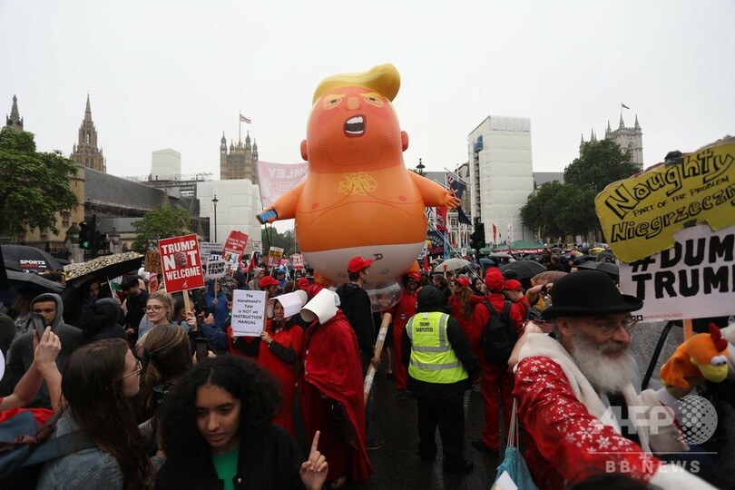トランプ氏は、ロンドン中心部で数千人が抗議デモを行っている事態を「偽ニュース」だと切り捨て、最大野党・労働党のジェレミー・コービン(Jeremy Corbyn)党首との会談を拒否した。コービン氏はトランプ氏の政策を激しく批判する演説を行いながらも一対一での会談を望んでいた。