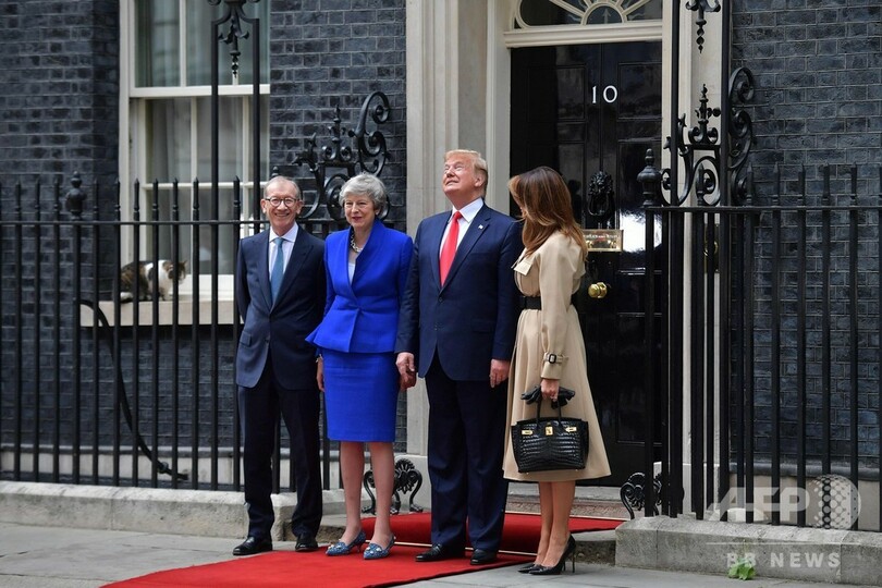 【6月5日 AFP】英国を訪問中のドナルド・トランプ(Donald Trump)米大統領は4日、辞任を表明しているテリーザ・メイ(Theresa May)英首相と会談し、欧州連合(EU)離脱(ブレグジット、Brexit)後に英国と「素晴らしい」貿易協定を結ぶと明言した。抗議デモや政治的混乱の中、ほころびを見せている英米の同盟関係を強化する狙いがある。