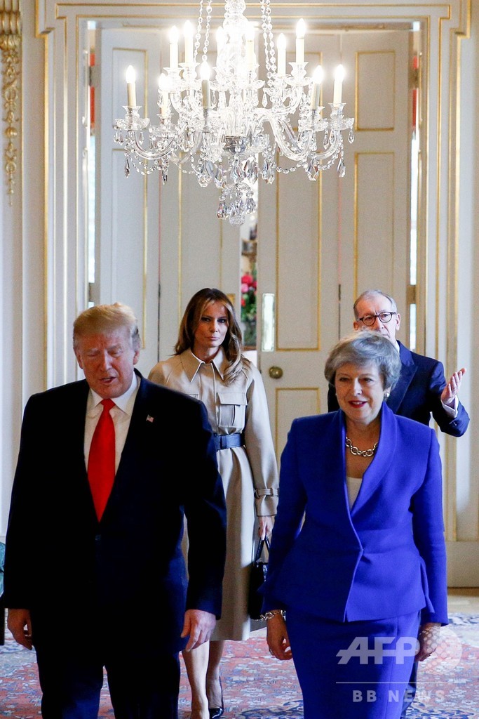 【6月5日 AFP】英国を訪問中のドナルド・トランプ(Donald Trump)米大統領は4日、辞任を表明しているテリーザ・メイ(Theresa May)英首相と会談し、欧州連合(EU)離脱(ブレグジット、Brexit)後に英国と「素晴らしい」貿易協定を結ぶと明言した。抗議デモや政治的混乱の中、ほころびを見せている英米の同盟関係を強化する狙いがある。