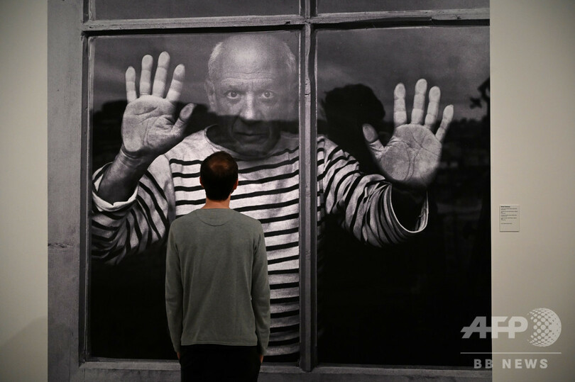 【6月24日 AFP】スペイン・バルセロナ(Barcelona)のピカソ美術館(Picasso Museum)で、フランス人写真家のロベール・ドアノー(Robert Doisneau)による写真「The Fate Line: Pablo Picasso at Vallauris(運命線:パブロ・ピカソ、バロリスにて)1952」を見つめる男性。(c)AFP