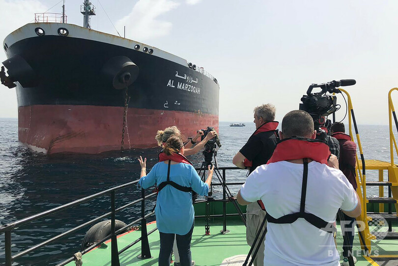 サウジ船2隻とノルウェー船、UAE船の計4隻は先月12日、UAE・フジャイラ(Fujairah)沖の同国領海内で爆発による攻撃を受けた。ちょうど米国とイランの緊張が高まっており、米国は攻撃の背後にイランがいると非難している。(c)AFP/Carole LANDRY
