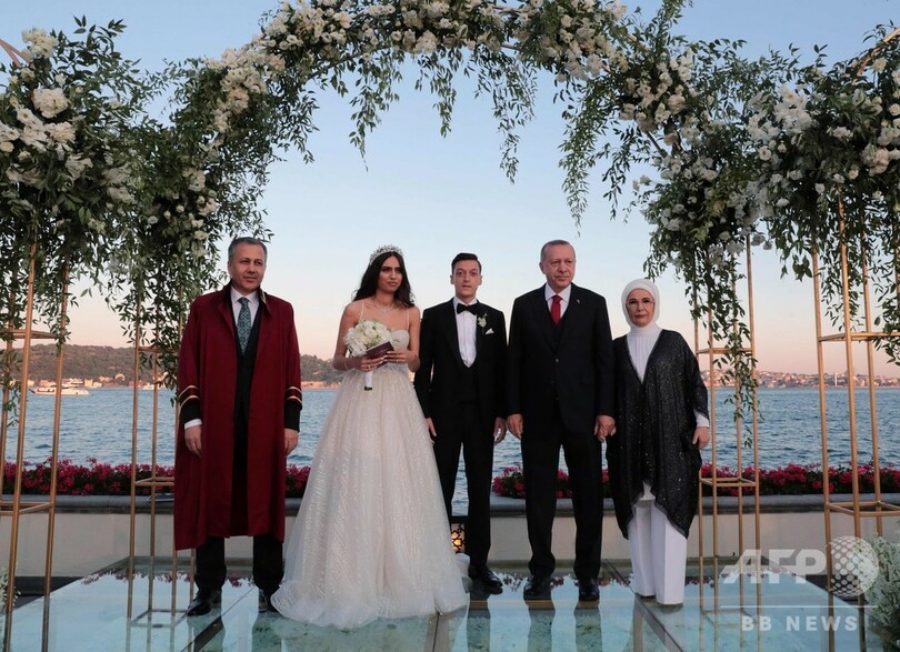 エルドアン大統領はセレブの結婚式にたびたび出席しており、特に選挙期間中は積極的に足を運ぶ。エジルの挙式は23日に控えるイスタンブールのやり直し市長選の直前というタイミングだった。3月に行われた市長選では最大野党・共和人民党(CHP)が接戦の末に勝利したが、後にこの結果は無効とされてやり直しが決まった。(c)AFP