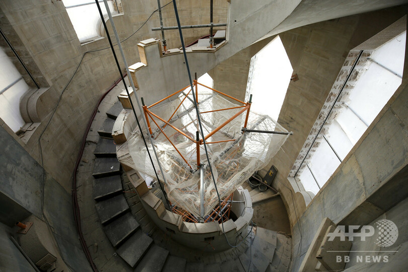 建築許可証によると、完成すれば高さ172メートルになるサグラダ・ファミリアの工事費は3億7400万ユーロ(約460億円)だが、その資金は寄付金と入場料のみで賄われている。完成は、ガウディの没後100年に当たる2026年の予定。(c)AFP