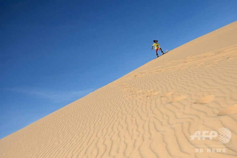 「戸惑ってしまった。砂丘でしばらく練習していたので技術力は身に付いていたが、本物の雪はつるつると滑りやすかった」とビンさんはAFPに語った。