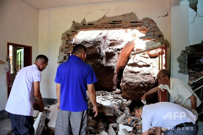 【6月14日 CNS】中国・江西省(Jiangxi)贛州市(Ganzhou)会昌県(Huichang)にある麻州鎮大坪脳村で11日、激しい雨の影響を受け、地滑りが発生した。その際、巨大な岩が数個、村民の家屋を直撃。壁が破壊され、柱や一部家具も破損した。