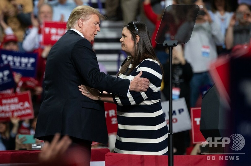 トランプ氏はツイッター(Twitter)への投稿で「3年半を経て、われわれの素晴らしいサラ・ハッカビー・サンダースが今月末にホワイトハウスを去り、アーカンソーという偉大な州に帰省する」と発表。サンダース報道官が同州知事に出馬することを願うと表明した。