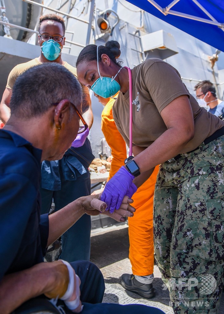 船腹後方には水面の真上に黒い部分があり、これは米軍が別に公開したスライドで示された損傷に一致するとみられる。小さい方の船を写した別のクローズアップ映像には、小さな操舵(そうだ)室の前に据え付けられた機関銃のようなものが捉えられている。米中央軍は映像の撮影方法については明らかにしなかったが、空中から撮影されたとみられる。