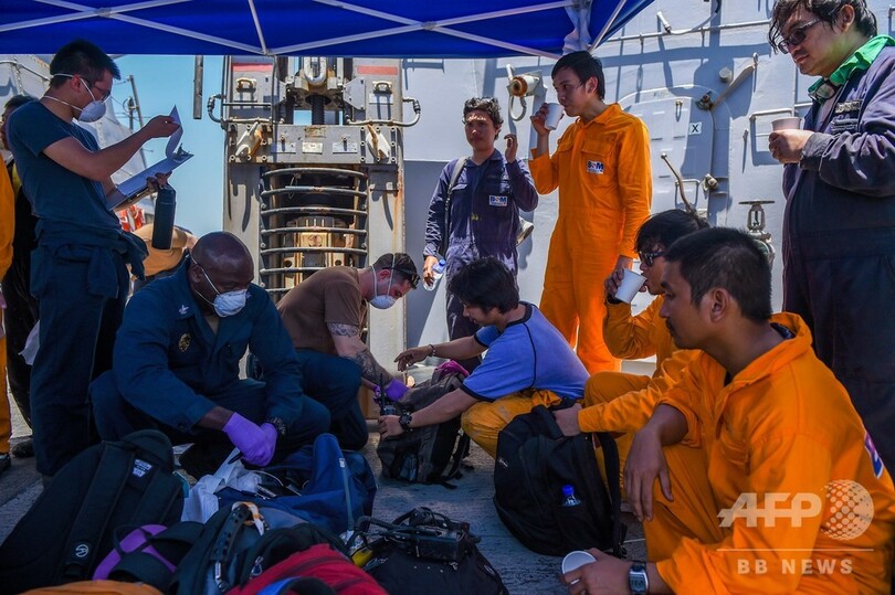 船腹後方には水面の真上に黒い部分があり、これは米軍が別に公開したスライドで示された損傷に一致するとみられる。小さい方の船を写した別のクローズアップ映像には、小さな操舵(そうだ)室の前に据え付けられた機関銃のようなものが捉えられている。米中央軍は映像の撮影方法については明らかにしなかったが、空中から撮影されたとみられる。