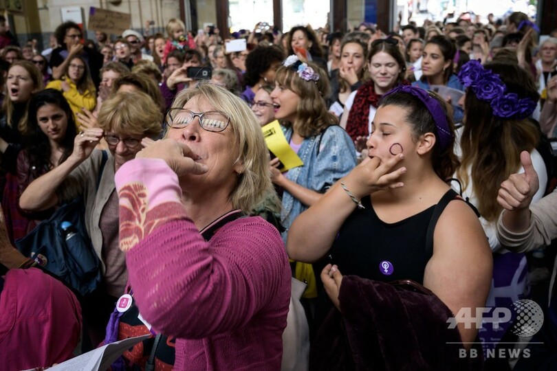 【6月15日 AFP】スイス各地で14日、男女間の賃金平等を求める女性たちがストライキを決行し、数十万人が参加した。参加者は紫の衣装を身に着け、ホイッスルを吹いたり、鍋や釜をたたいたり、フェミニストのスローガンを掲げたりしながら通りを行進した。