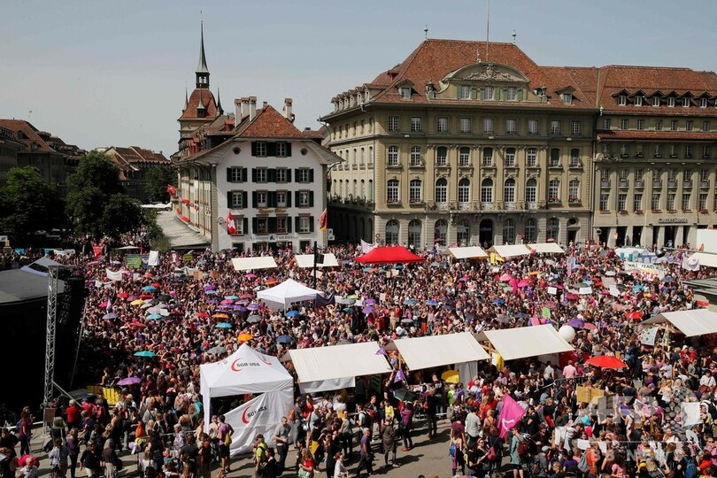 男女平等賃金を! スイス各地で女性数十万人がスト