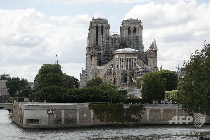 【6月16日 AFP】フランス・パリのノートルダム大聖堂(Notre Dame Cathedral)で、壊滅的な被害をもたらした大火災からちょうど2か月となった15日、火災後初めてのミサが営まれた。残がいの落下に備え、司祭や信徒らはヘルメットを着用して参列した。