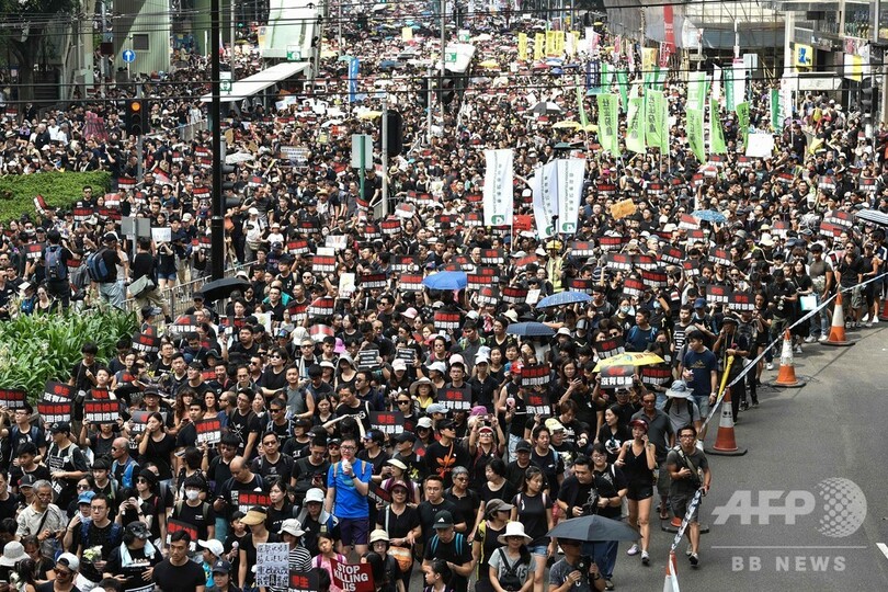 【6月16日 AFP】(更新)デモ隊と警官隊の間で異例の衝突が発生した香港で16日、中国本土への犯罪容疑者の引き渡しを可能にする「逃亡犯条例」をめぐり、数万人規模の新たなデモが決行された。15日には香港の行政トップが同条例の改正を延期すると譲歩したにもかかわらず、住民たちの怒りは収まっていない。
