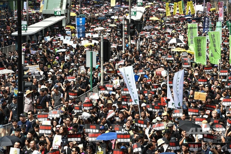 【6月16日 AFP】(更新)デモ隊と警官隊の間で異例の衝突が発生した香港で16日、中国本土への犯罪容疑者の引き渡しを可能にする「逃亡犯条例」をめぐり、数万人規模の新たなデモが決行された。15日には香港の行政トップが同条例の改正を延期すると譲歩したにもかかわらず、住民たちの怒りは収まっていない。
