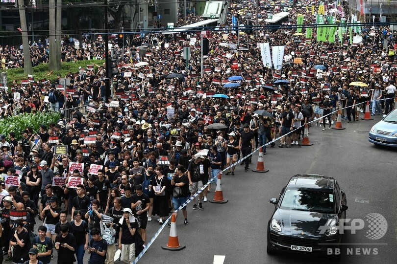 【6月16日 AFP】(更新)デモ隊と警官隊の間で異例の衝突が発生した香港で16日、中国本土への犯罪容疑者の引き渡しを可能にする「逃亡犯条例」をめぐり、数万人規模の新たなデモが決行された。15日には香港の行政トップが同条例の改正を延期すると譲歩したにもかかわらず、住民たちの怒りは収まっていない。