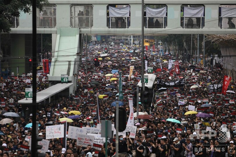 【6月16日 AFP】(更新)デモ隊と警官隊の間で異例の衝突が発生した香港で16日、中国本土への犯罪容疑者の引き渡しを可能にする「逃亡犯条例」をめぐり、数万人規模の新たなデモが決行された。15日には香港の行政トップが同条例の改正を延期すると譲歩したにもかかわらず、住民たちの怒りは収まっていない。