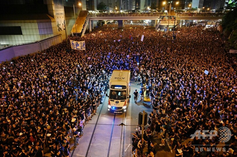 主催者の発表した参加者数が正しければ、デモの規模は103万人が集まったとされる9日の約2倍となり、天安門(Tiananmen)事件直前の1989年5月に北京の学生らの民主化運動に共感して行われた支援デモの約150万人という記録も抜いて、香港史上最大となる。