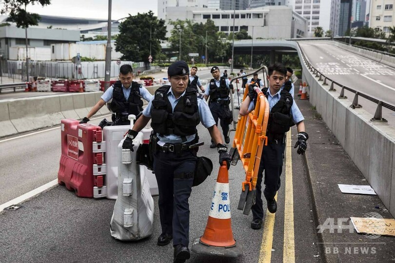 警察は同日朝から普段は交通量が多い立法会(議会)前の幹線道路に残っていた数百人のデモ隊に退去するよう求め、最終的にデモ隊は警官隊と特に対立することなく道路の占拠をやめた。残っているデモ隊の大半は近くの公園に移動した。