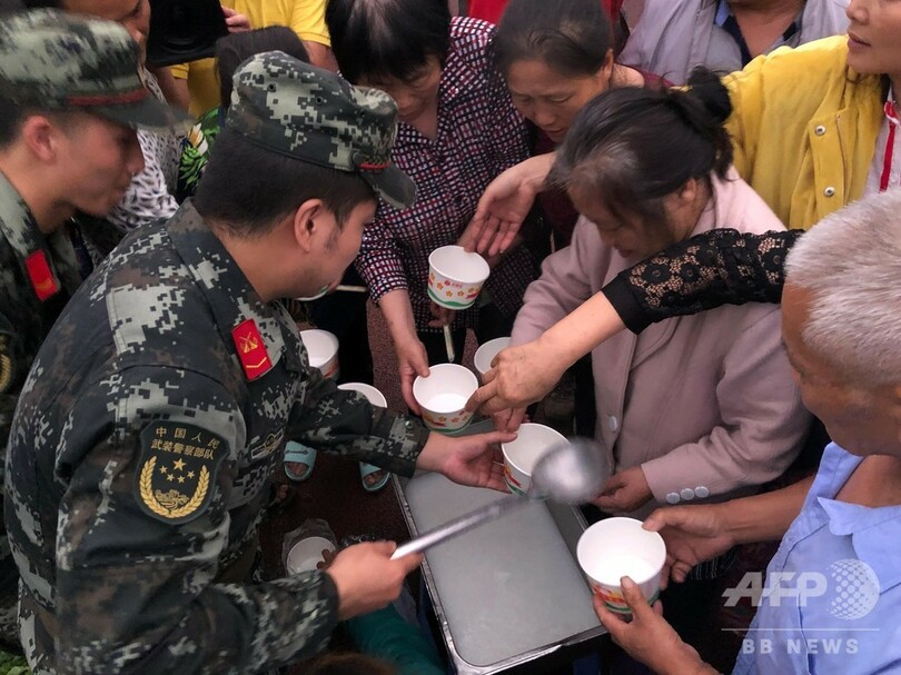被災区域は、長寧県(Changning)、ゴン県(Gong)、高県(Gao)などにまたがり、18日午前9時20分時点で被災者数は10万3771人、倒壊家屋73棟、損壊家屋1万657棟などとなっている。(c)CNS/JCM/AFPBB News