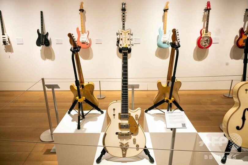 オークションの主催者は競売大手のクリスティーズ(Christie's)。1955年製ギブソン(Gibson)レス・ポール(Les Paul)をはじめ、ピンク・フロイドの名曲「あなたがここにいてほしい(Wish You Were Here)」のレコーディングで使用されたマーティン(Martin)のアコースティックギターなどが出品される。(c)AFP