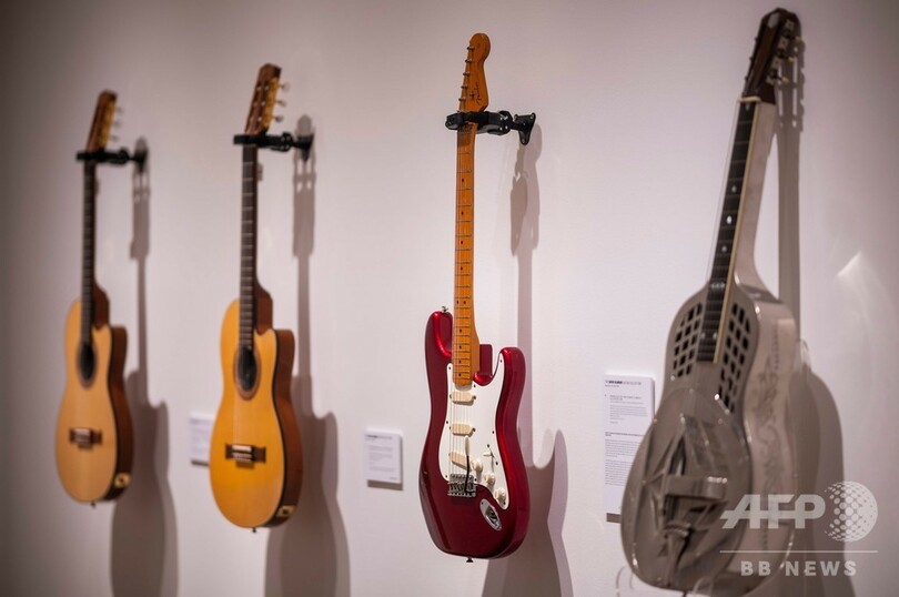 オークションの主催者は競売大手のクリスティーズ(Christie's)。1955年製ギブソン(Gibson)レス・ポール(Les Paul)をはじめ、ピンク・フロイドの名曲「あなたがここにいてほしい(Wish You Were Here)」のレコーディングで使用されたマーティン(Martin)のアコースティックギターなどが出品される。(c)AFP
