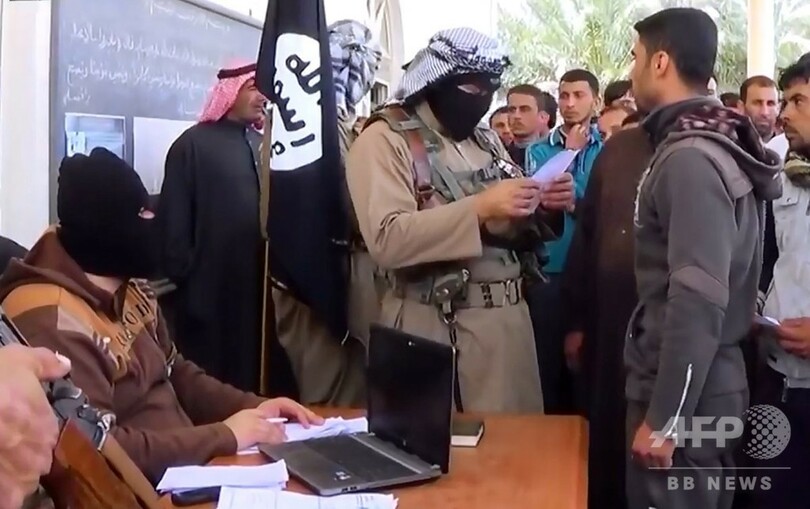 IS系のアルフルガン・メディアが2014年3月17日に公開した宣伝動画の1シーン。イラク・アンバル州で志願者を勧誘するIS戦闘員(撮影日不明)。(c)AFP