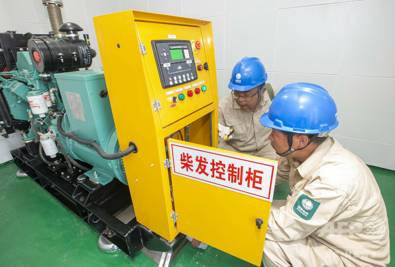 また、島の海水淡水化プラントで毎日約10トンの真水を生産できるため、島を守る民兵と島の見学者にとって、日常の電力・水の需要への不安は解消されている。(c)CNS/JCM/AFPBB News
